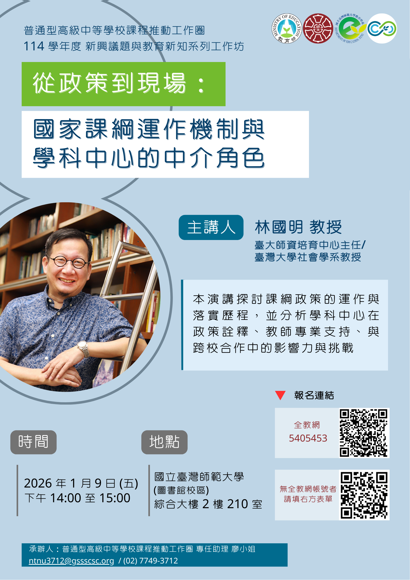 普通型高級中等學校課程推動工作圈114學年度新興議題與教育新知系列工作坊實施計畫與海報訊息