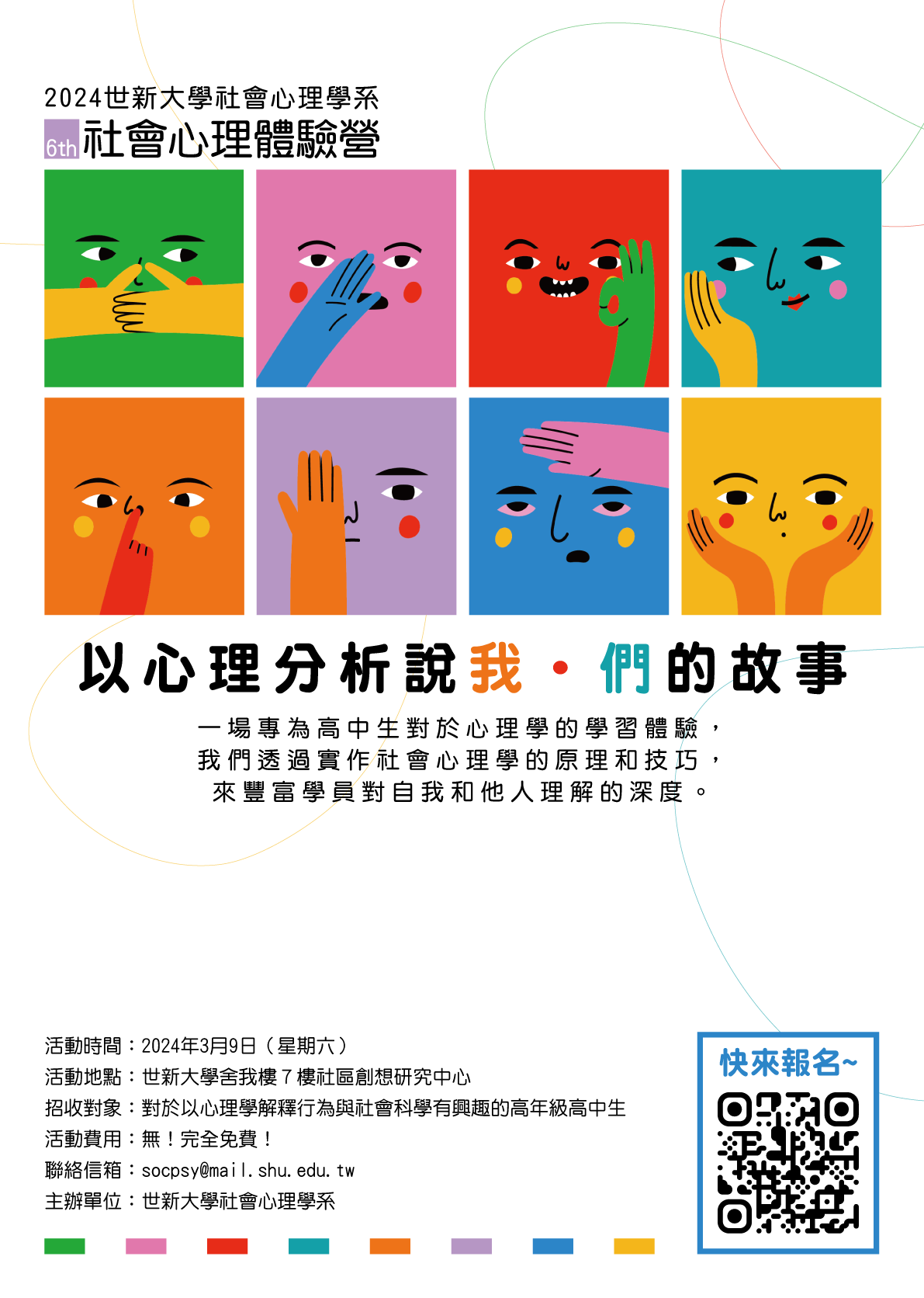 公告2024世新大學社會心理學系社會心理體驗-以心理分析說我們的故事活動,