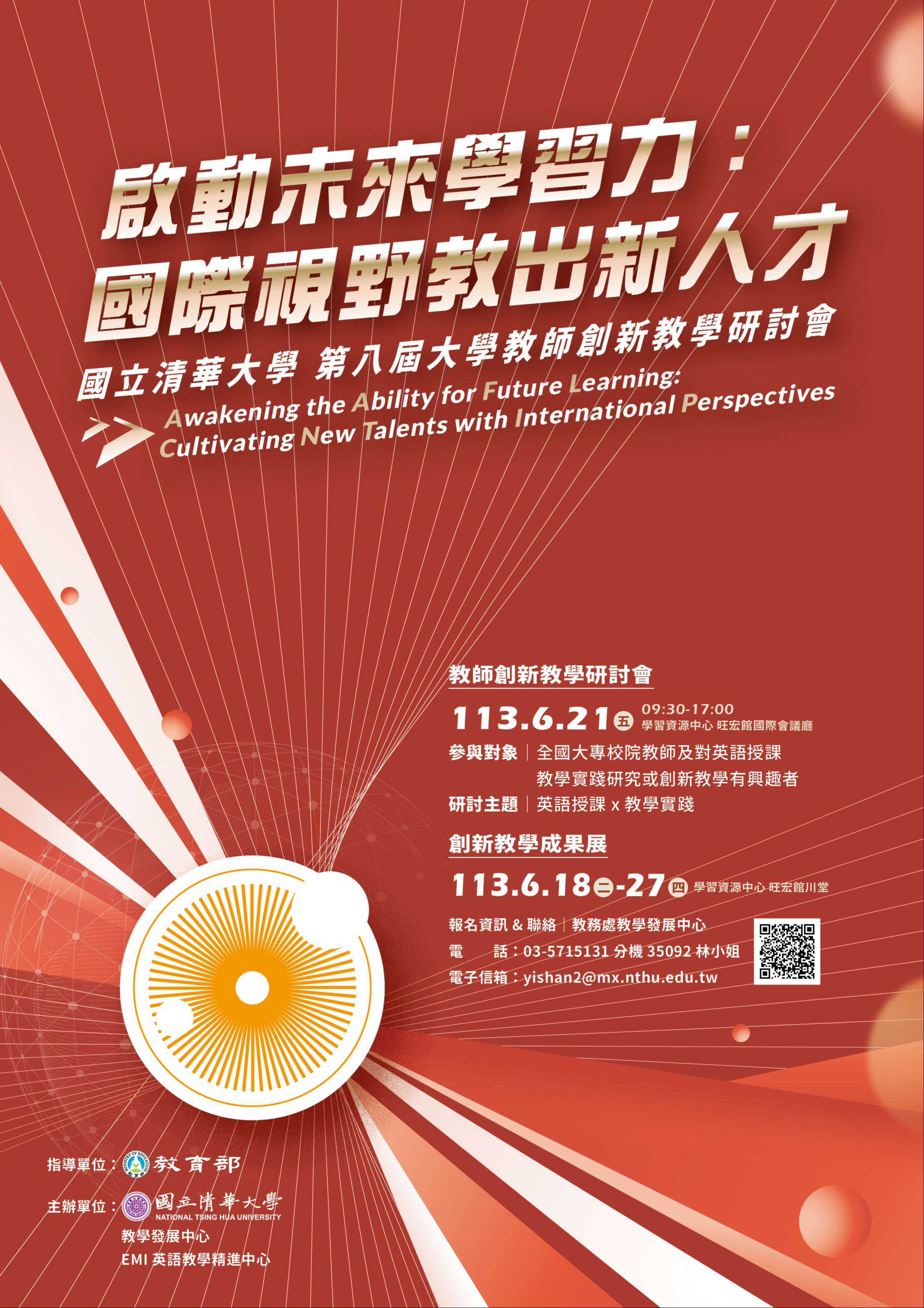 國立清華大學於113年6月21日(星期五)舉辦「第八屆大學教師創新教學研討會─啟動未來學習力:國際視野教出新人才」,歡迎踴躍報名參加。