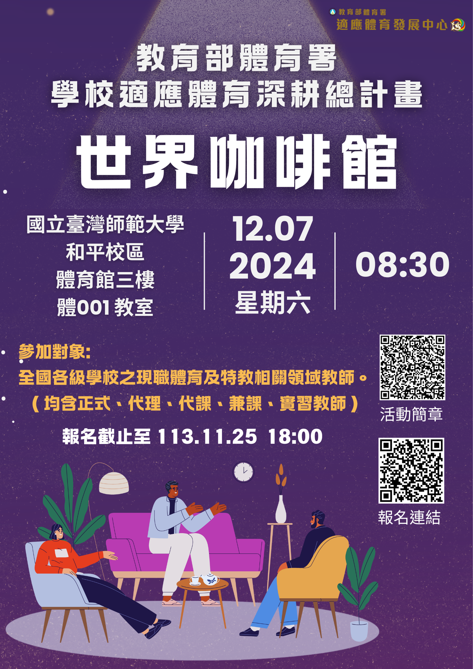 (三)活動地點:國立臺灣師範大學和平校區I體育館3樓體001 教室(臺北市大安區和平東路一段162號)。