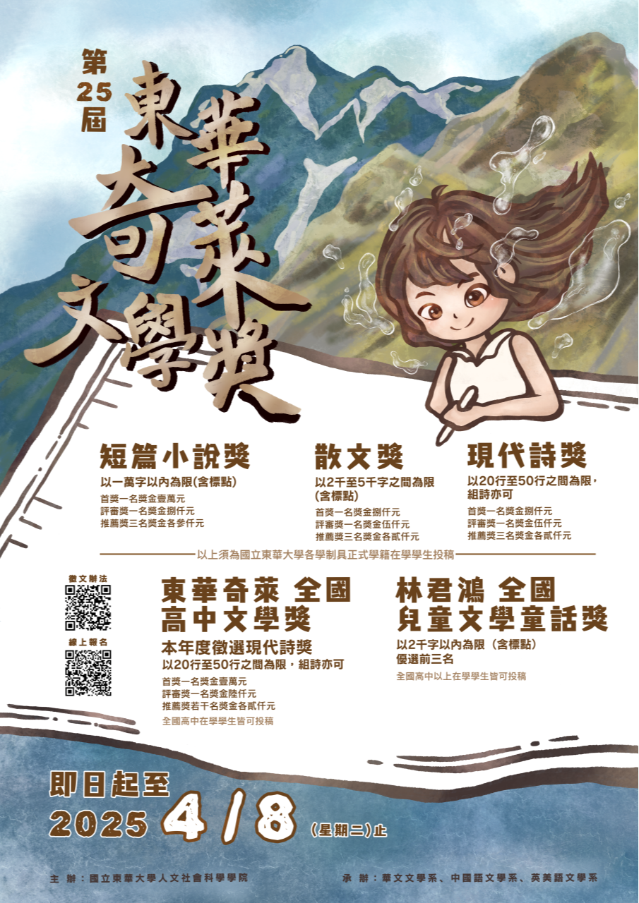 轉知公告第25屆東華奇萊文學獎徵稿訊息。
