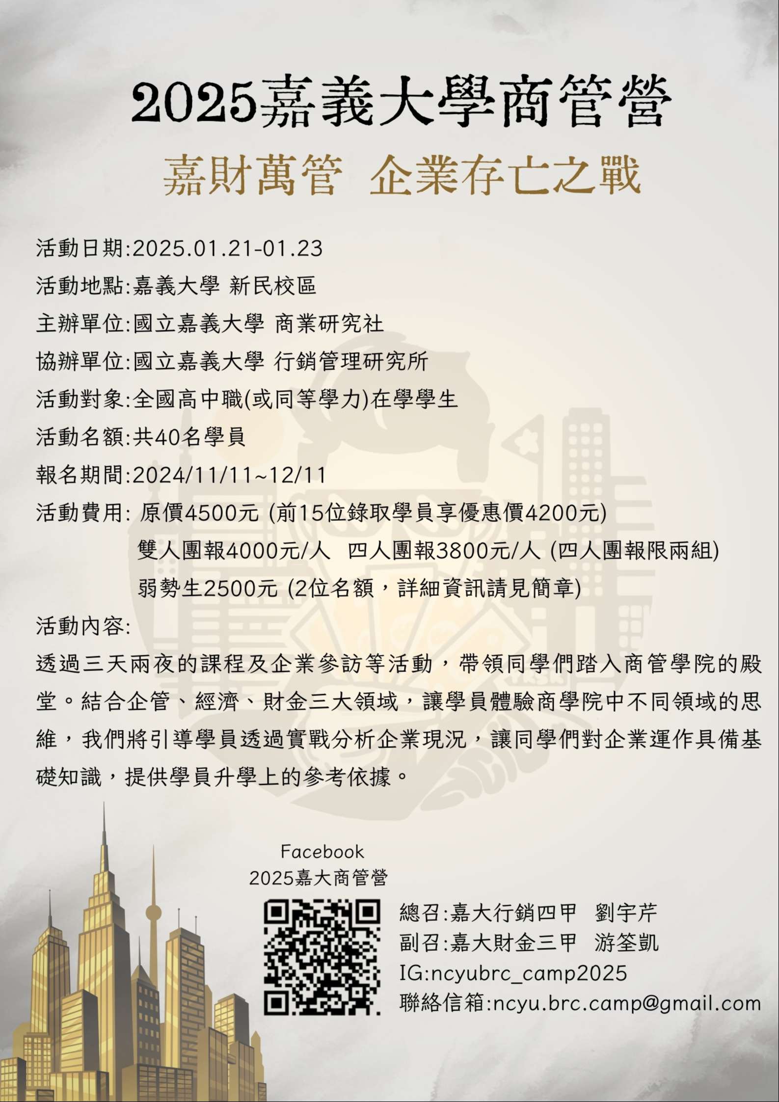 公告國立嘉義大學商管營-嘉財萬管活動簡章,