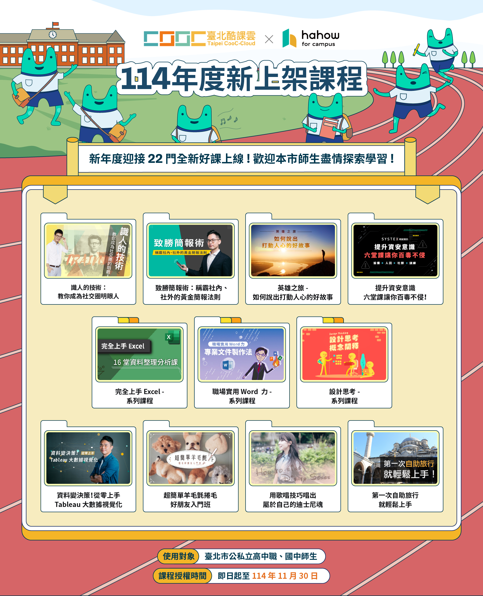 臺北市立第一女子高級中學114年度更新臺北酷課雲多元跨域數位學習資源「Hahow for Campus」線上課程訊息 詳如附件