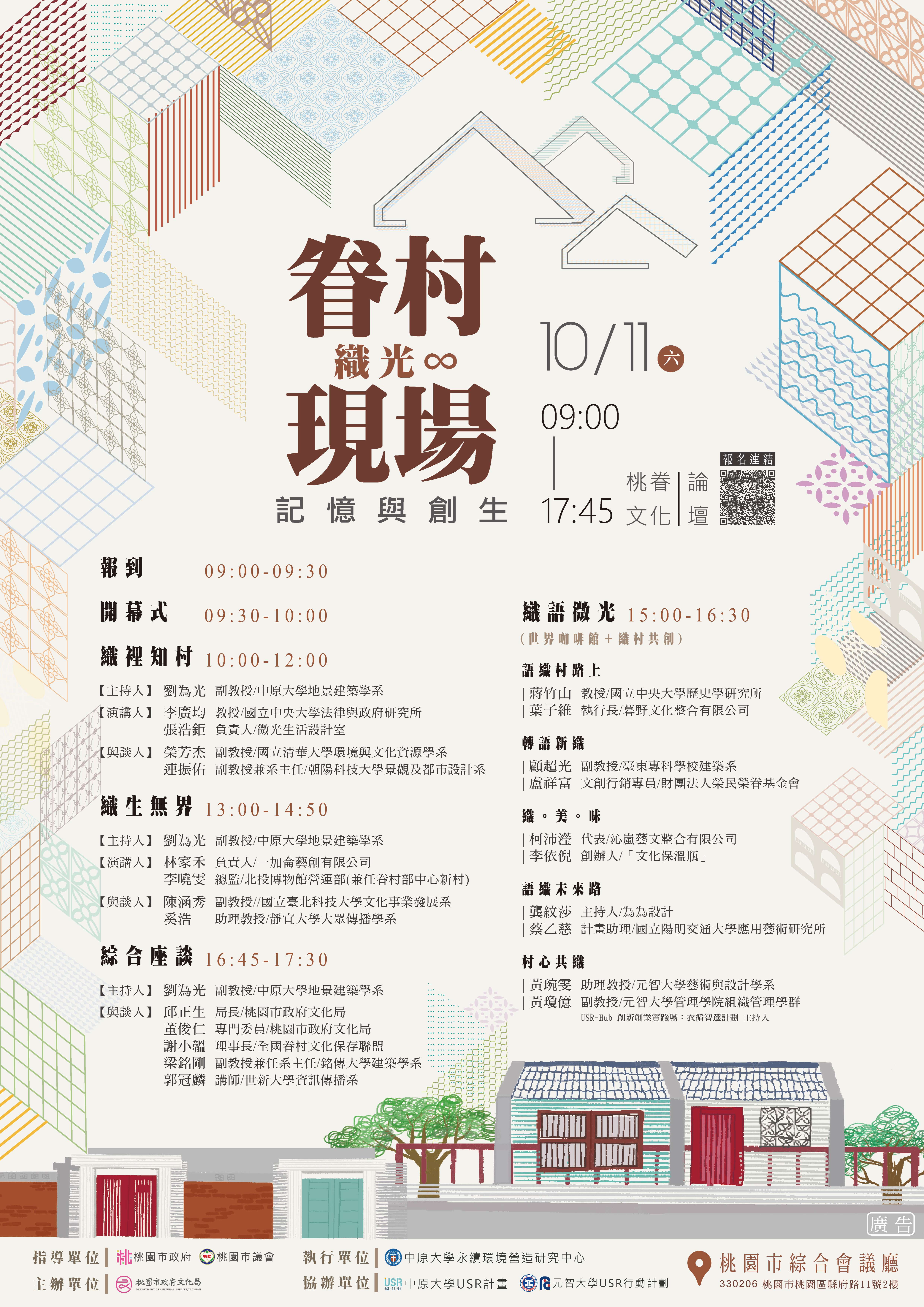 三、活動名稱:114年桃園眷村文化論壇活動《記憶與創生:眷村現場織光∞》。